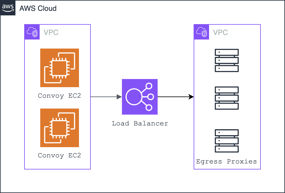 AWS Architecture diagram of Convoy deployed alongside egress proxies to protect SSRF.